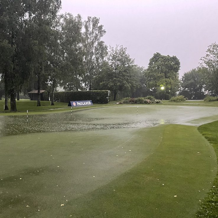 Dienstag 27.07. 43 Liter Regen in den Abendstunden des montags sind auf der Golfanlage runtergekommen. Bunker sind vollgelaufen und Teiche stehen auf Fairways. Es wird zu Beginn des Tages nur ein eingeschränkter Spielbetrieb möglich sein.