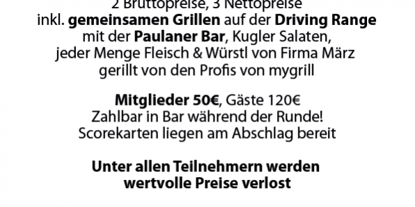 Die SMARTGOLF Academy veranstaltet wieder das beliebte 4er Scramble Turnier. Kanonenstart um 11 Uhr am Sonntag den 11. Juli. Nach der Runde geht es wie immer mit super leckeren Grillen auf der Driving Range weiter. Anmeldungen bitte über das Sekretariat oder online hier klicken.