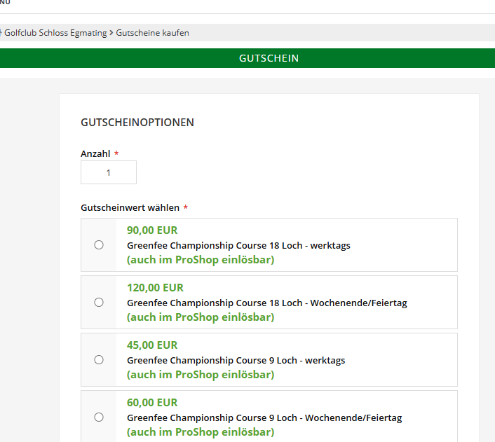 Entweder explizit für ein bestimmtes Greenfee oder auch einfach nur einen Wertgutschein, alles ist möglich.